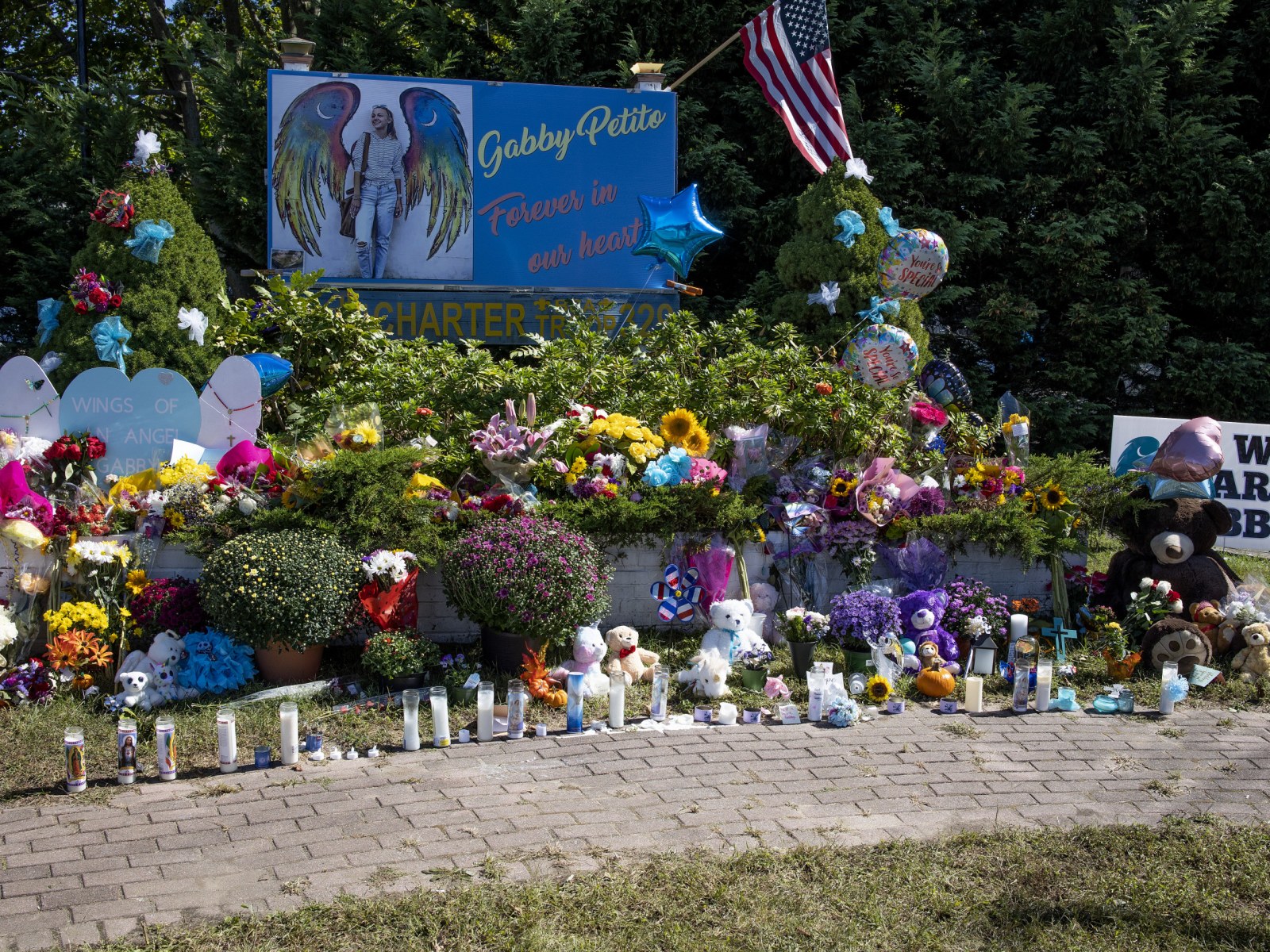 Community members hold a vigil amid the disappearance of Gabby Petito in North Port Florida. Gabby Petito 22 died three to four weeks before her body was found Sept. Brian Laundrie search continues as her family retrieves memorial items.